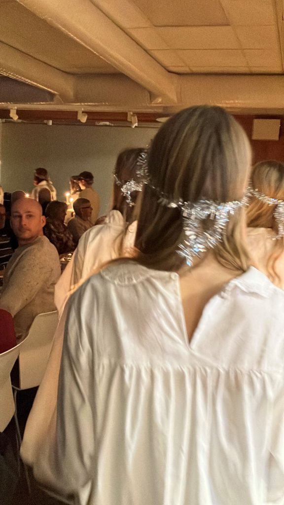 Vacker stämsång, tända ljus, doft av glögg och en trivsam stund i gott sällskap – det sammanfattar luciafirandet på Sjuans mötesplats den 12 december. Det 70-talet gäster som deltog bjöds på välkomstglögg och sorlet spred sig snabbt i lokalen. Luciatåget, som bestod av en musikklass från Grubbeskolan, skapade en magisk stämning när de med levande ljus tågade in i den nedsläckta lokalen och sjöng luciasången. Därefter fyllde eleverna hela scenen och framförde svenska och utländska julsånger i vacker stämsång, något som rörde mångas ögon till tårar.