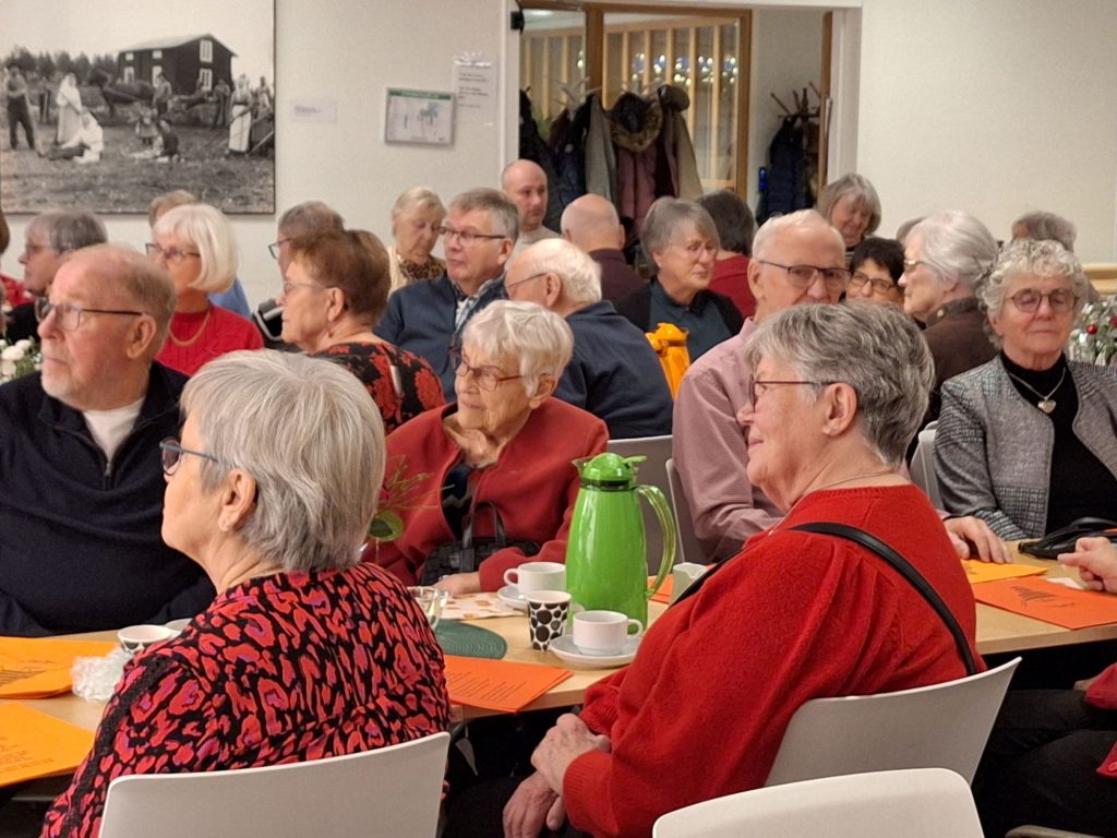 Efter att luciatåget hälsats farväl med rungande applåder dukade fikagruppen upp med lussekatter, pepparkakor och kaffe. På scenen gjorde Sam Sehlström och Erik Brännström, båda med gitarr, sig redo att leda eftermiddagens allsång. Gästerna stämde upp till älskade julklassiker som Bjällerklang, Rudolf med röda mulen, Stilla natt och White Christmas. Dagen till ära bjöd vädret på gnistrande nysnö, även om prognosen för en vitskimrande jul ser mindre bra ut. Bakom arrangemanget stod Vi på Sjuan – Frivilligcentralen, PRO UME och SKPF – som gemensamt bjudit in till festligheterna. Efter årsskiftet drar aktiviteterna på Sjuans mötesplats igång igen. Första måndagscaféet är den 26 januari då med allsångscafé. Välkommen att titta in!